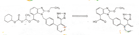 120.次地沙坦酯是AⅡ受体拮抗剂,坎地沙坦酯在体内需要转化为坎地沙坦才能产生药物活性,体内半衰期约9小,主要经肾排泄,坎地沙坦口服生物利用度为 149 坎地沙坦酯的口服利用度42%,下列是坎地沙坦转化为坎地沙坦的过程: